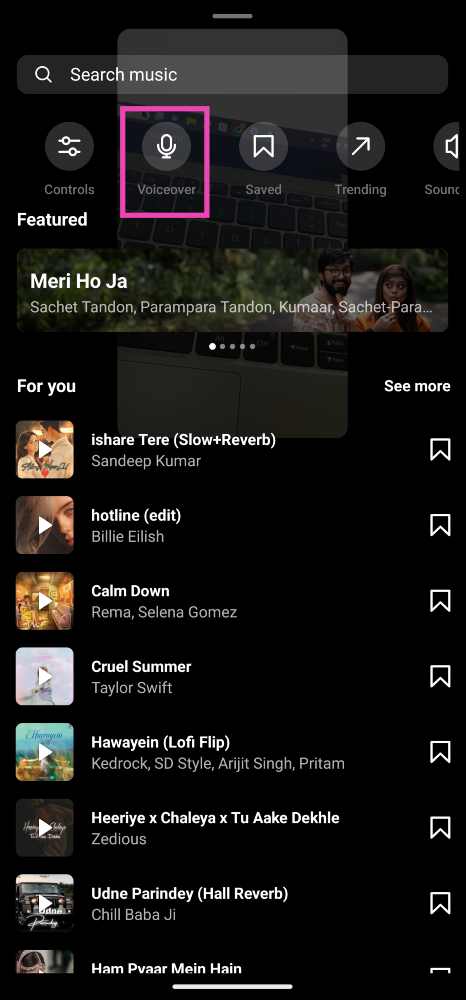 Avaa kela Instagramissa ja napauta sivun alaosassa olevaa kappaletta tai äänimesta. ValitseKäyttää ääntäSeuraavalla sivulla ja aloita kelan kuvaaminen.