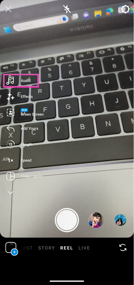 Etkö löydä haluamasi kappaletta Instagramin musiikkikirjastosta? Ei tarvitse huolehtia. Ainoa mitä sinun tarvitsee tehdä, on soittaa kappale puhelimellasi ampuessasi kelaa ja se sisällytetään taustamusiikiksi valmiissa videossa. Voit suoratoistaa kappaleen Spotifyssa tai jopa soittaa tallennetun äänitiedoston puhelimellasi kuvaamalla kelaa. Tämä on loistava tapa lisätä omaa musiikkia kelasi.