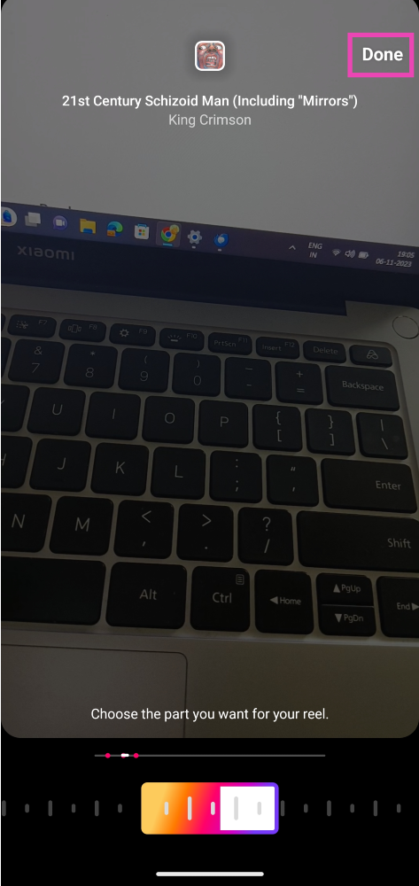 Vaihe 4:Käyttääetsiä baariaJos haluat valita kappaleen osan, jonka haluat taustamusiikkina kelallesi.