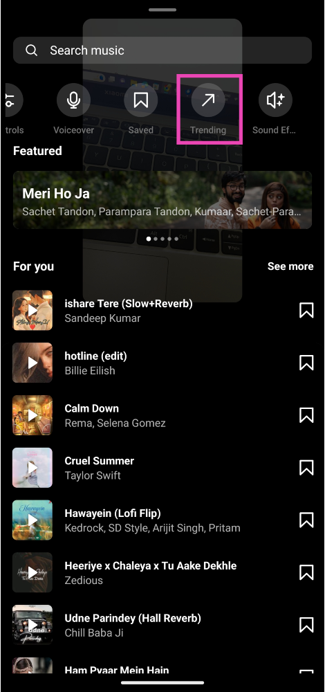 Vaihe 4:Valitse atrendikäs laululuettelosta tai etsimäsi kappaleesta.