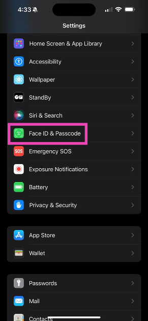 Vaihe 1:Siirry osoitteeseenAsetuksetja valitseKasvotunnus ja pääsykoodi.