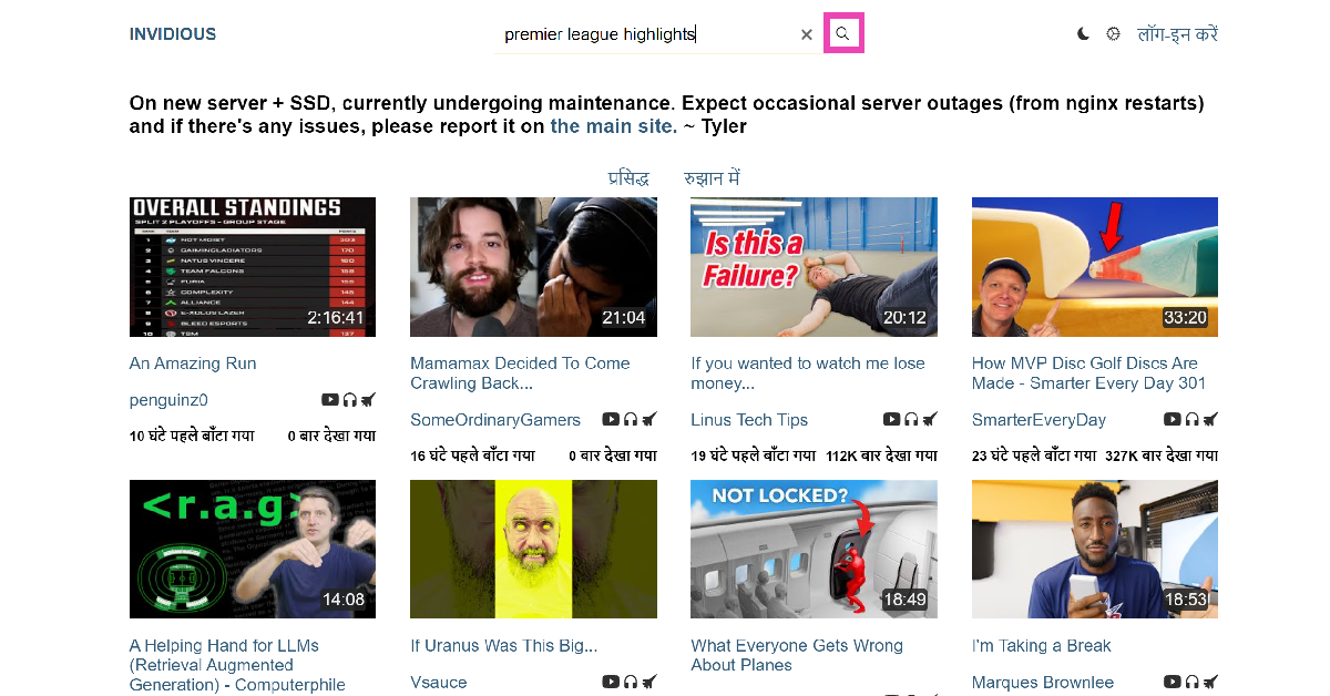 Vaihe 1:Mennä jhkhttps://invidious.io/ja napsautaKäyttää voimakasta.