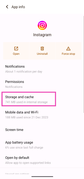 Selvitä Instagramin välimuisti