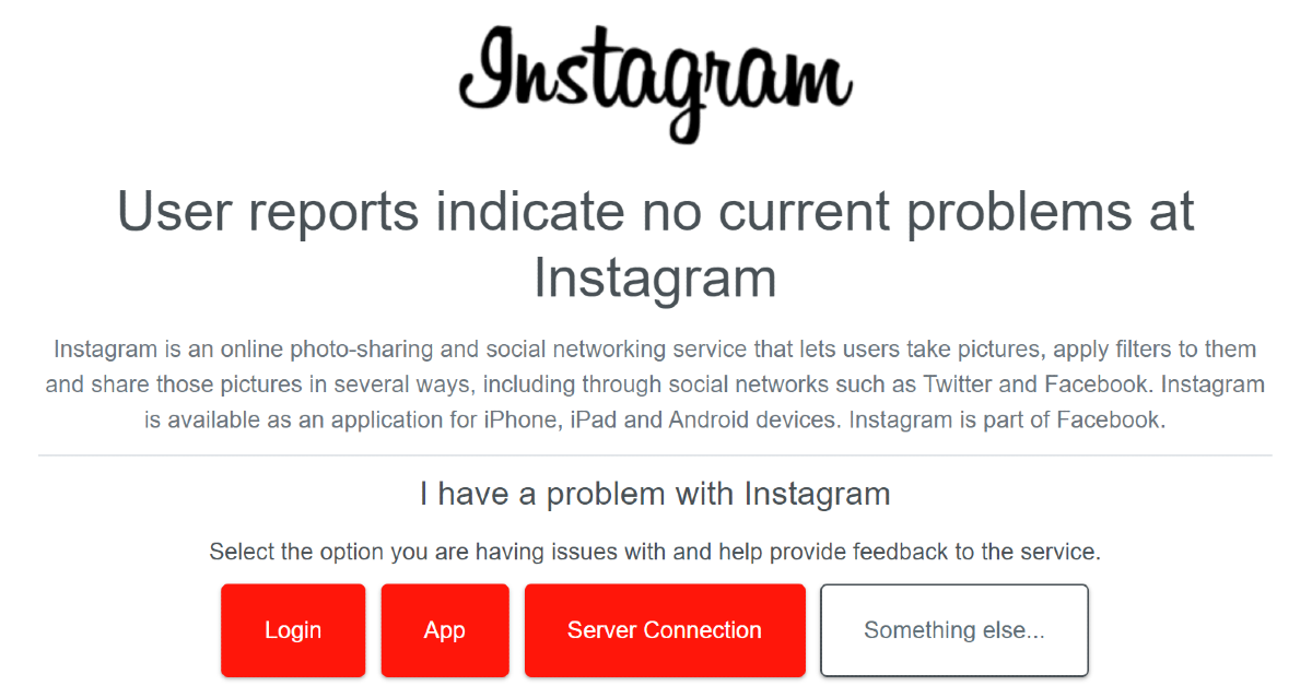 Tarkista, onko Instagram alhaalla