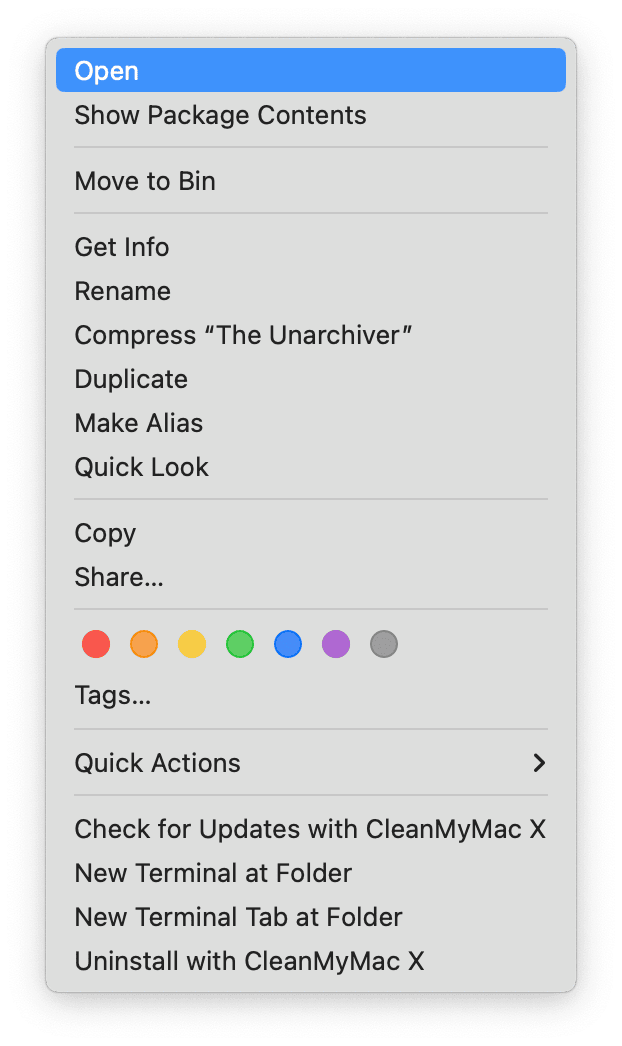 Pidä Control-näppäintä painettuna ja napsauta hiiren kakkospainikkeella sovelluskuvaketta.