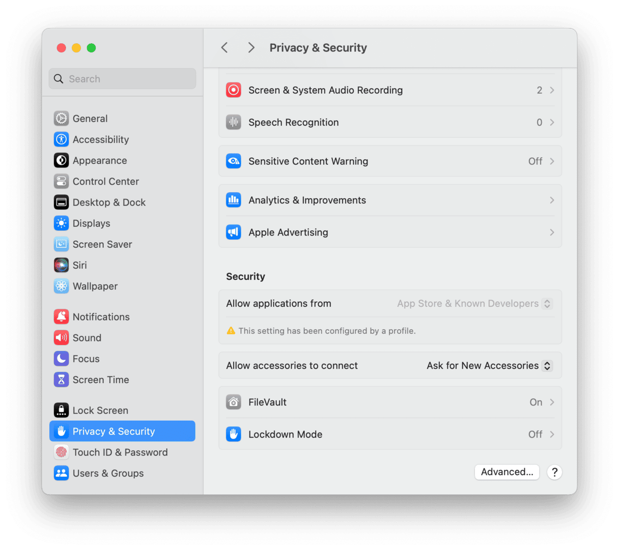 Oletusarvoisesti macOS on määritetty hyväksymään virallisesta App Storesta ladatut sovellukset ja tunnistettujen kehittäjien luomat sovellukset.