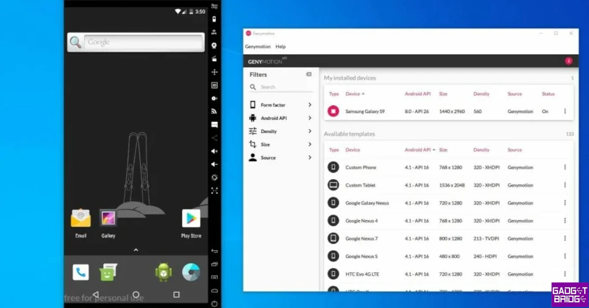 Lataa Genymotion yhdessä VirtualBoxin kanssa ja luo sitten tili. Valitse henkilökohtainen käyttöominaisuus. Asennettuaan valinta mallisluettelosta näytön resoluution määrittämiseksi, Android -versio ja siihen kerätyt resurssit ja asenna haluttu malli. Nyt voit lisätä PlayStore -napsauttamalla Open Gapps -kuvaketta ja ladata ja pelaamalla suosikkipeliäsi.