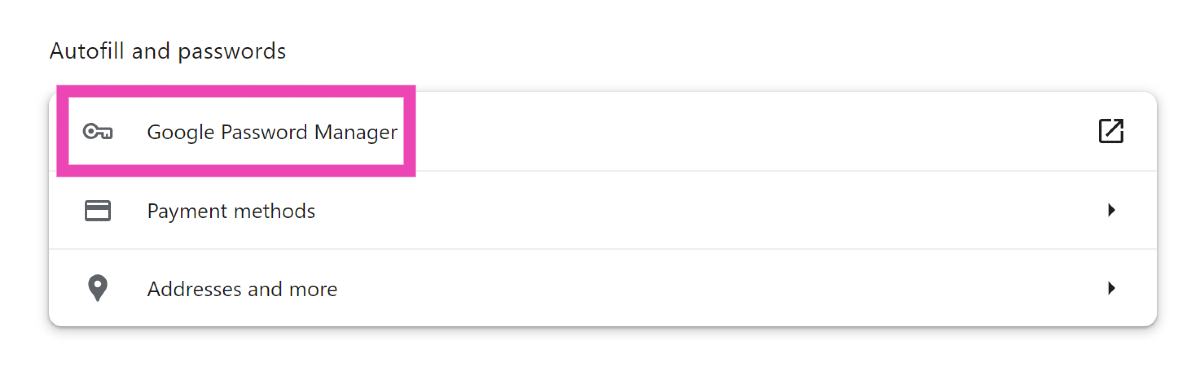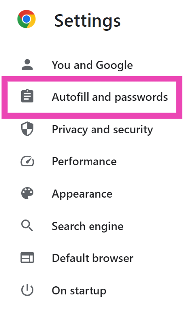 Vaihe 3:Siirry osoitteeseenAutomaattinen täyttö ja salasanat.