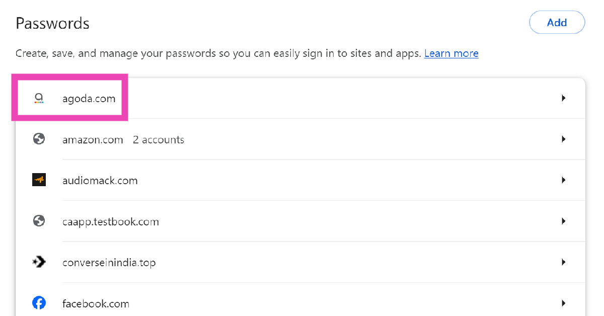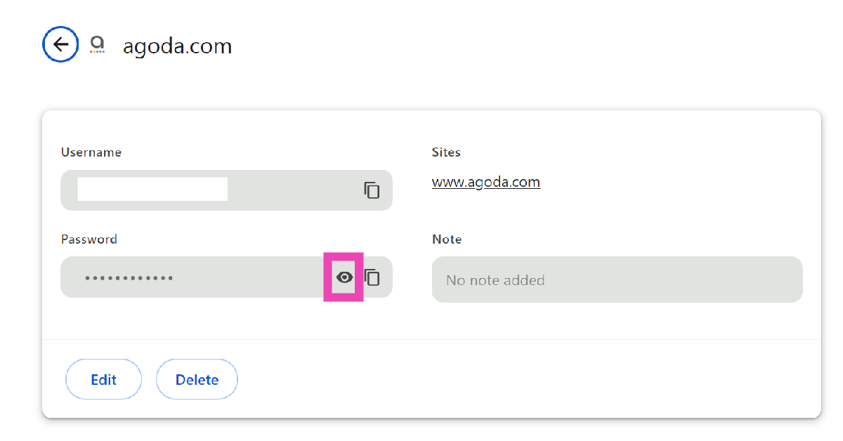 Vaihe 5:Napsauta verkkosivustoakatso salasanaolet säästänyt sitä varten.