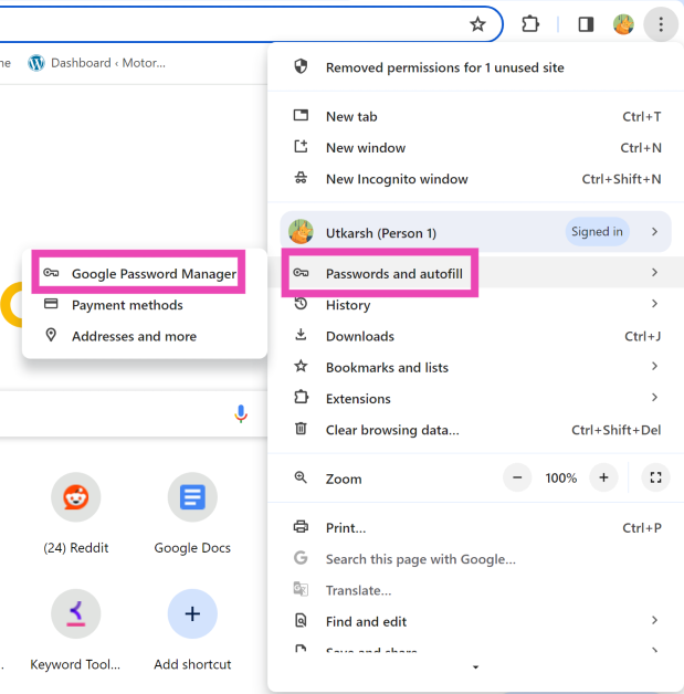 Toinen tapa käyttää Google Password Manageria Chromessa (PC)