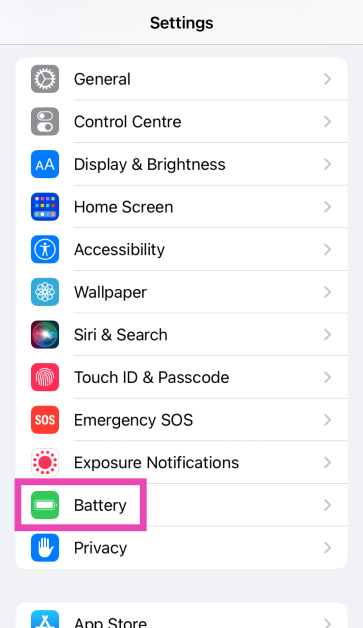 Vaihe 1:Mennä jhkAsetuksetja valitseAkku.