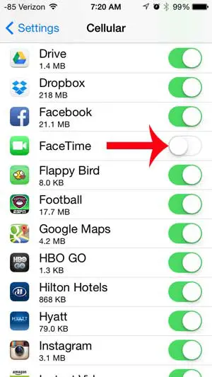 Nyt kun tiedät enemmän verkon tyyppien määrittämisestä, joihin voit soittaa ja vastaanottaa FaceTime -puheluita, voit hallita, pystyykö kyseinen sovellus solutiedot.