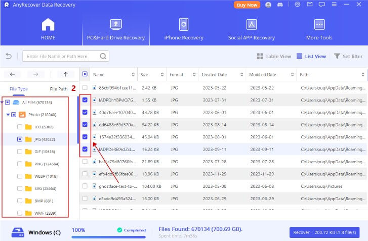 AnyRecover voi hakea tiedot useista skenaarioista eikä sekoita tiedon laatua.