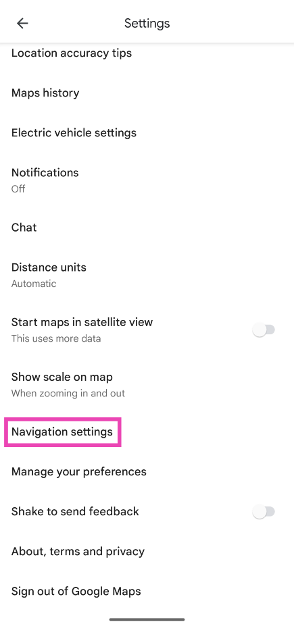 Vaihe 4:Vieritä alas ja valitseNavigointiasetukset.