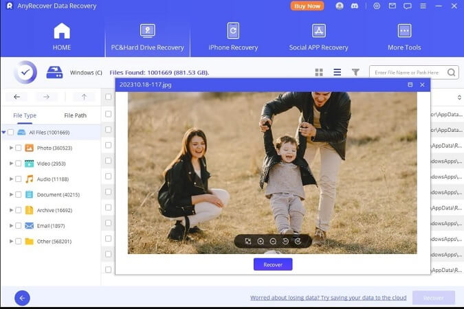 AnyveroverTukee melkein kaikkia tallennuslaitteita ja on melko helppoa yli 1000 tietotyypin palauttamiseksi. Lisäksi AnyRecover siunaa sinua mahdollisuuden esikatsella tietoja, jolloin voit valita palauttaaksesi tietotyypin.