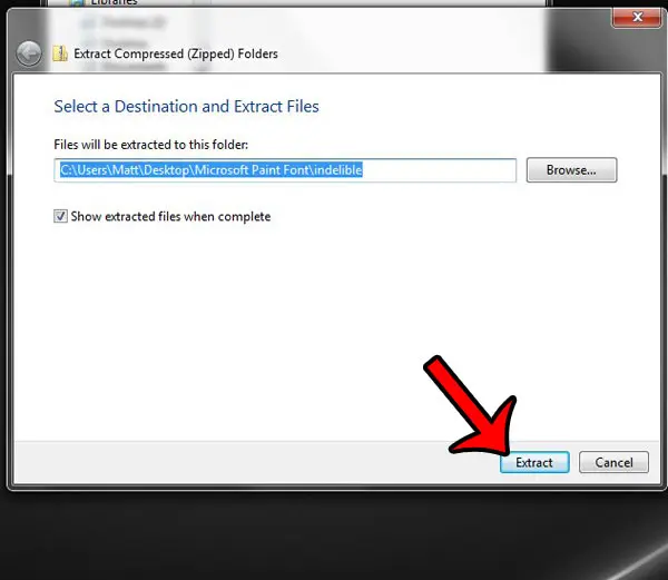 Alla olevassa oppaassamme vaiheet näyttävät sinulle, kuinka fontti asennetaan Windows 7 -tietokoneeseen. Prosessi on samanlainen myös muissa Windowsin versioissa. Kun olet suorittanut nämä vaiheet, voit käyttää uutta fonttia Microsoft Maalissa, samoin kuin muita ohjelmia, jotka käyttävät Windows -kirjastoa, kuten Microsoft Word tai Microsoft PowerPoint.