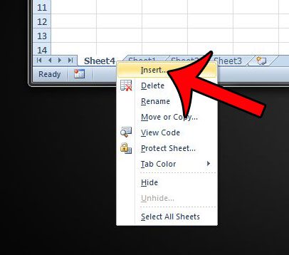 Lisäksi voit lisätä uuden laskentataulukon napsauttamalla hiiren kakkospainikkeella mitä tahansa ikkunan alaosassa olevia laskentataulukkoa ja valitsemalla sittenLisätävaihtoehto.