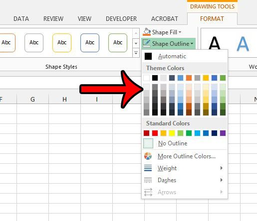 Jos joudut lisäämään ääriviivat Excel -tekstiruutuun, voit valita tekstiruudun, napsauta Format -välilehteä, napsauta Shape Outline -painiketta ja valitse sitten haluttu reunan väri.