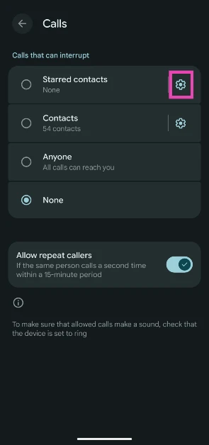 Näiden suodattimien lisäksi on mahdollisuus antaa toistuvien puhelujen puheluista. Jos sama numero soittaa sinulle 15 minuutin aikana, heidän puhelunsa lävistää DND-suodattimen ja näkyy näytöllä. Tämä ominaisuus varmistaa, että ihmiset voivat tavoittaa sinut hätätilanteessa, vaikka puhelimesi on, älä häiritse.