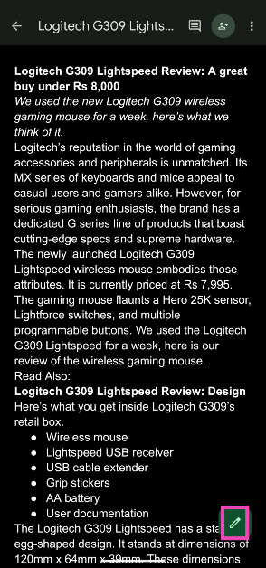Vaihe 1:KäynnistääGoogle Docs -sovellus puhelimessa ja avaa asiakirja.