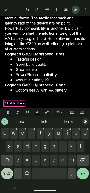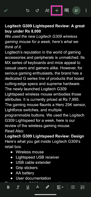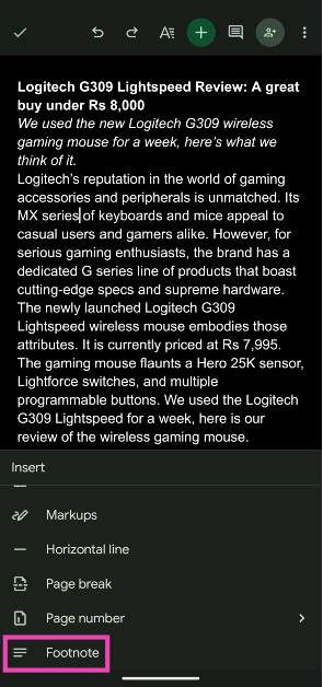 Lisää alaviitteet Google -dokumentteihin (mobiili)