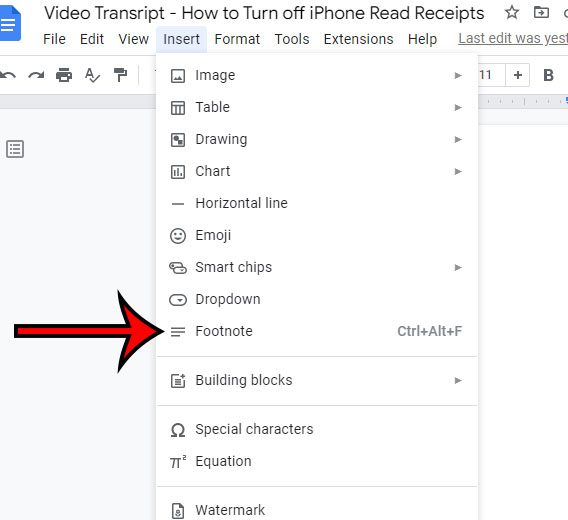 Opas jatkuu alla lisätietoja siitä, kuinka lisätä alaviitteitä Google -dokumentteihin, mukaan lukien kuvat näistä vaiheista.