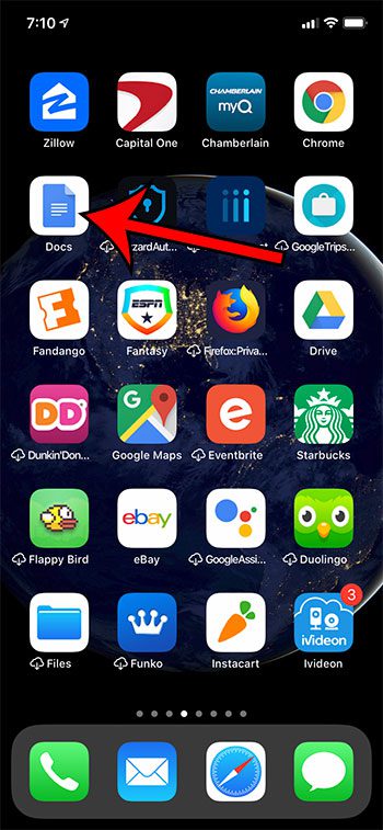Tämän artikkelin vaiheet suoritettiin iPhone 11: llä iOS 13.3: ssa. Käytän Google Docs -sovelluksen uusinta versiota, joka oli käytettävissä tämän artikkelin kirjoittamisen yhteydessä. Jos sinulla ei vielä ole Google Docs -sovellusta iPhonessaVoit ladata ja asentaa sen täältä. Sitten sinun on kirjauduttava Google -tiliisi ensimmäisen kerran avaamalla sovelluksen.