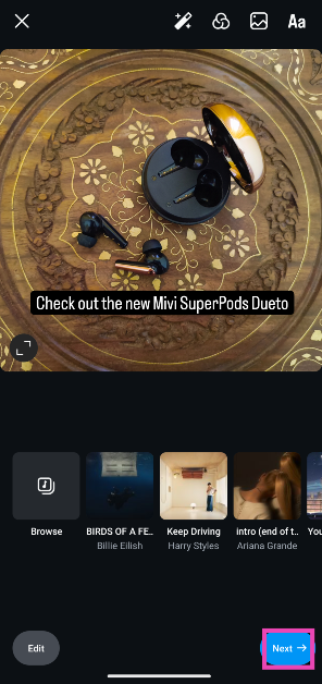Vaihe 6:Jos haluat, voit lisätä kappaleen viestiisi. OsumaSeuraava.