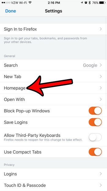Kun käynnistät Firefox -selaimen iPhonessa, kotisivusi on ensimmäinen asia, jonka näet.