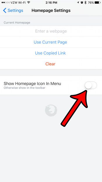 Vaihe 6: Napauta painiketta oikealla puolellaNäytä kotisivun kuvake valikossa.