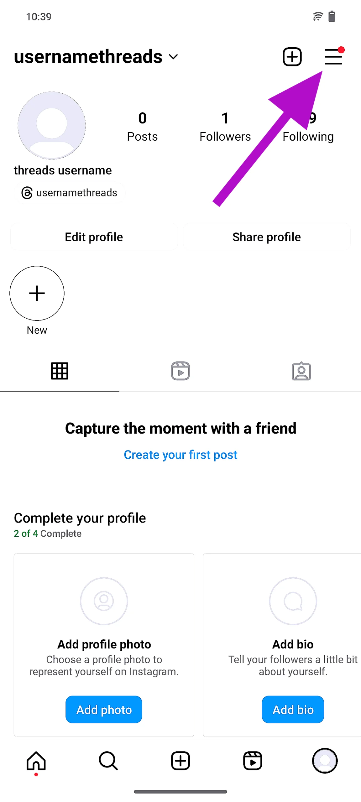 Vaihe 1:KäynnistääInstagram -sovellus ja napautaprofiilikuvakenäytön oikeassa alakulmassa.
