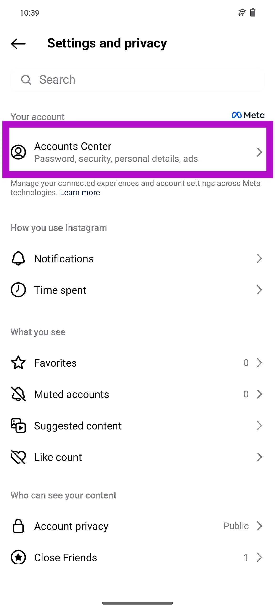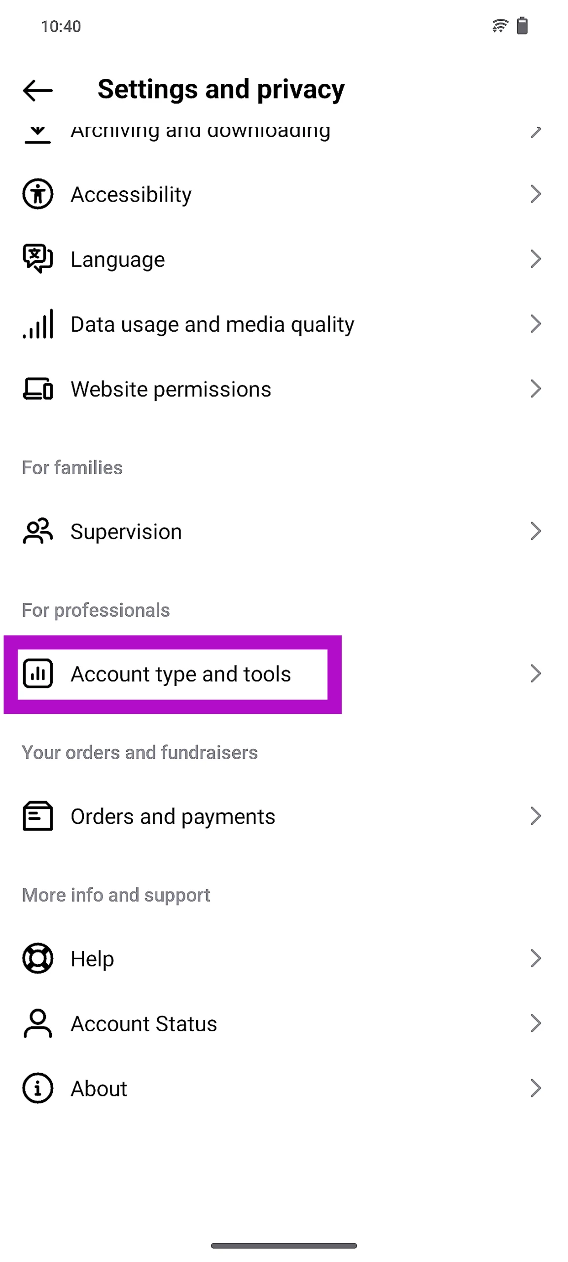 Vaihe 3:ValitaAsetukset ja yksityisyys.