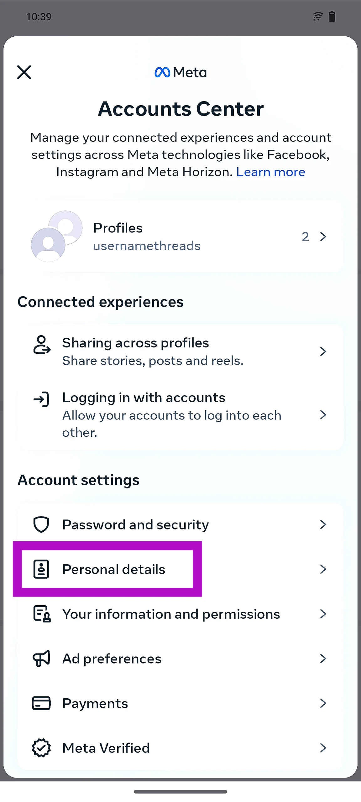 Jos haluat kirjautua Facebookiin Instagram -ohjelmalla, siirry osoitteeseenTilien keskuksen> Sisäänkirjautuminen tilien kanssaja valitse 'Anna kaikkien tileiden kirjautua sisään toisiinsa'.