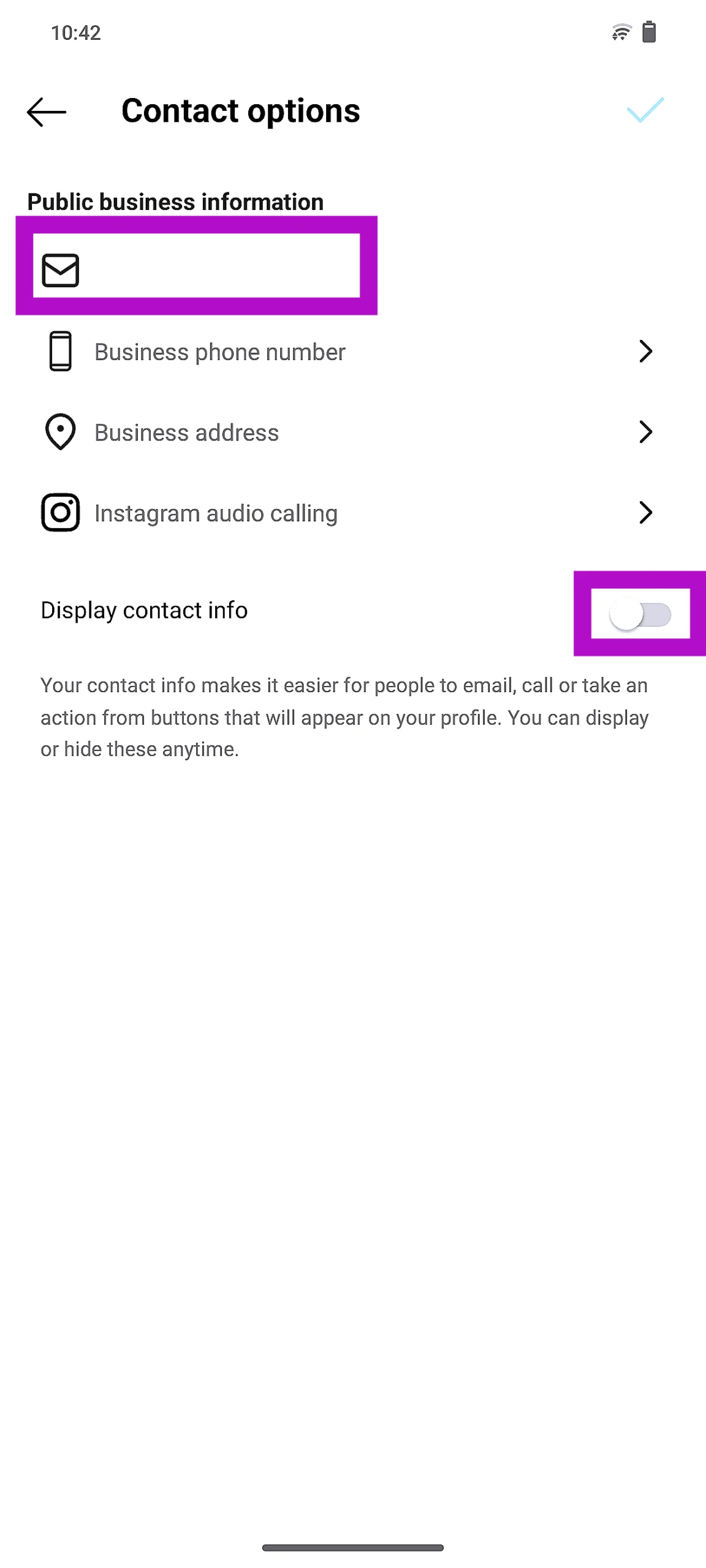 Lisää sähköposti Instagram -bioon