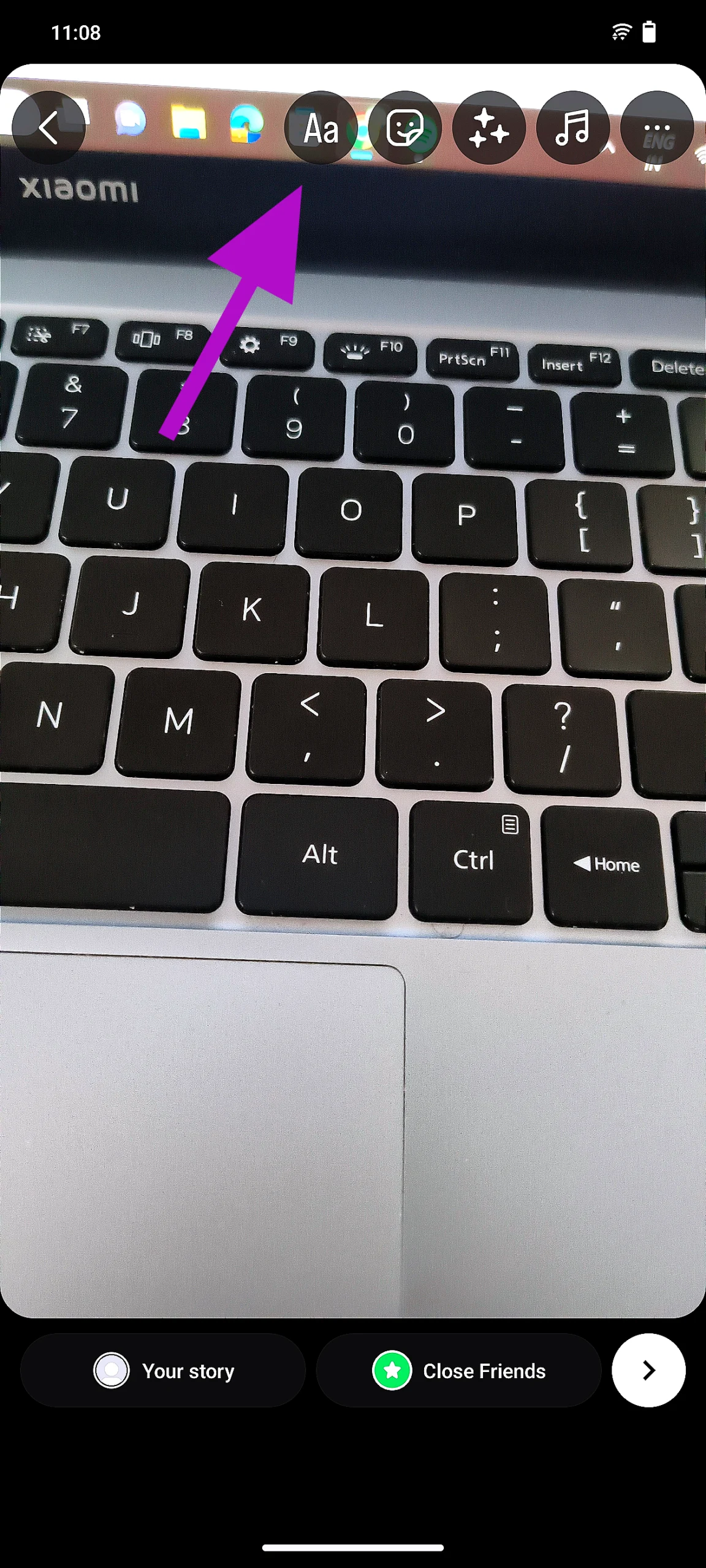 Vaihe 1:Luo Instagram -tarina ja napautatekstikuvakeylhäällä.