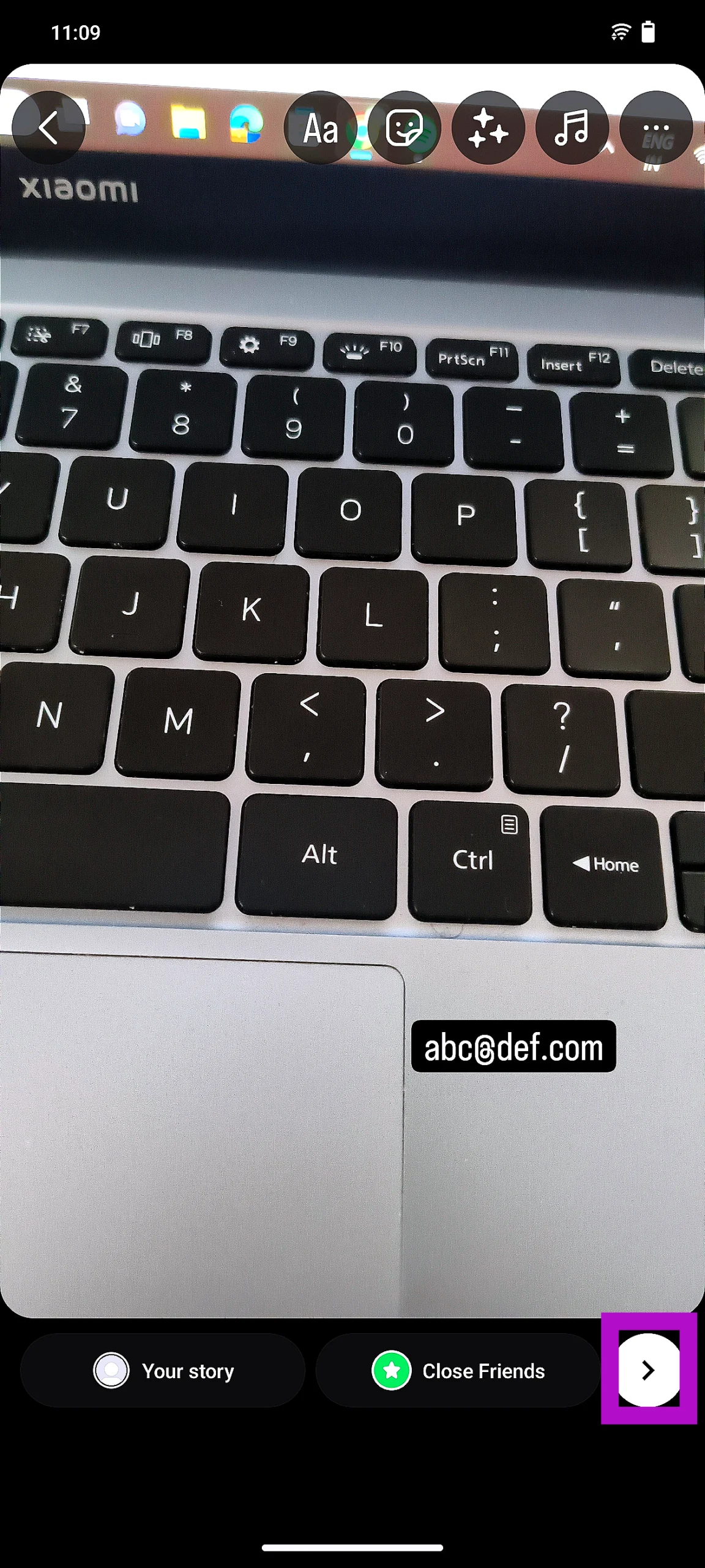 Vaihe 4:Napauttaaeteenpäin nuoliNäytön oikeassa alakulmassa lähettää tarinasi.