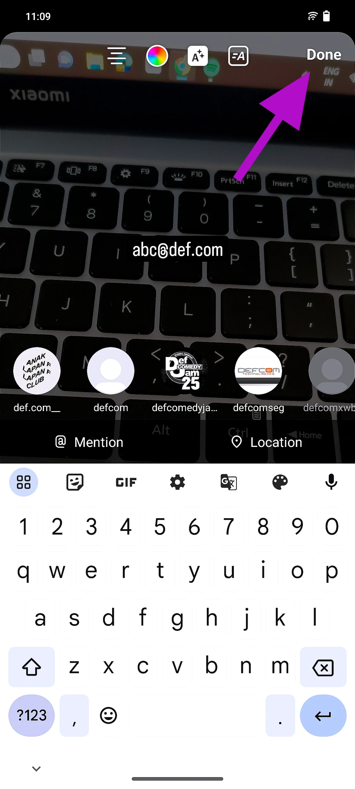 Lisää sähköposti Instagram -tarinasi