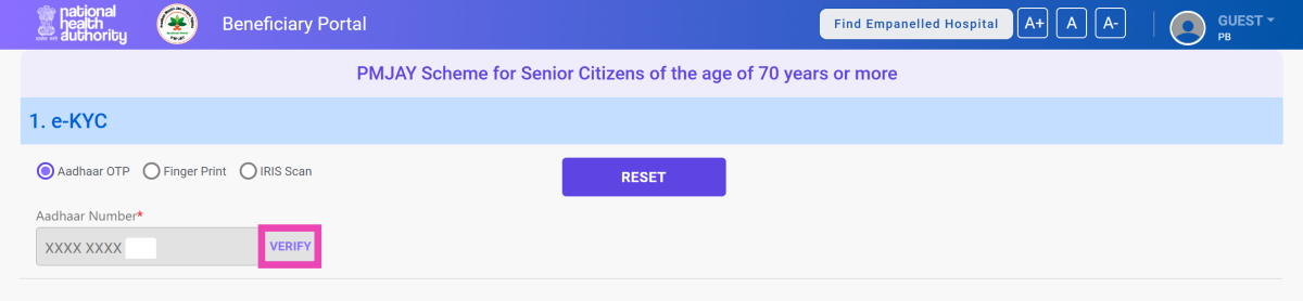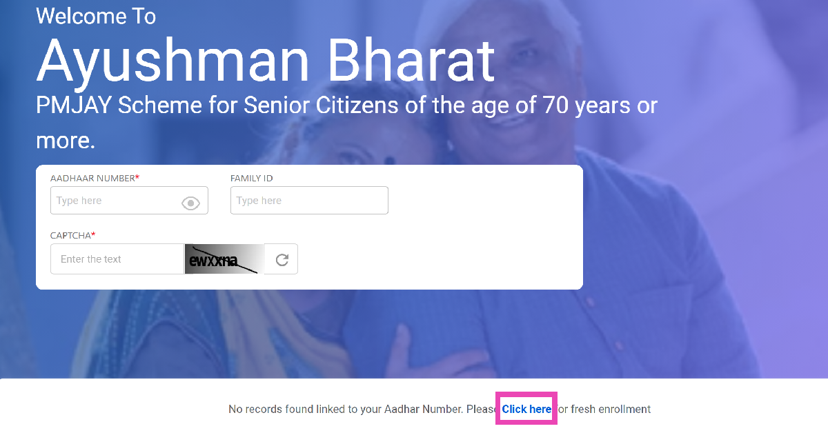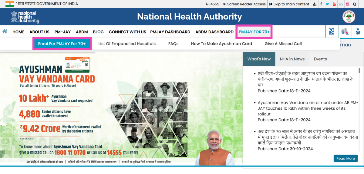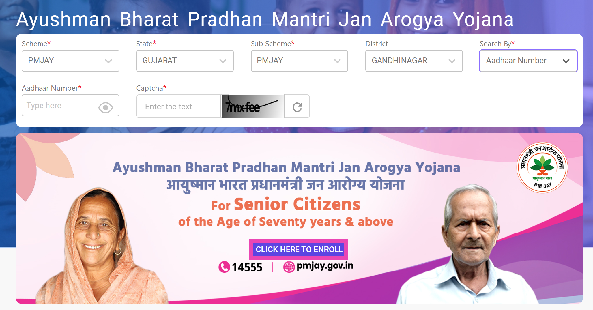 Vaihe 2:Kiertää kohdistinta yliPmjay 70+ja valitseIlmoittaudu PMJAY: lle yli 70.