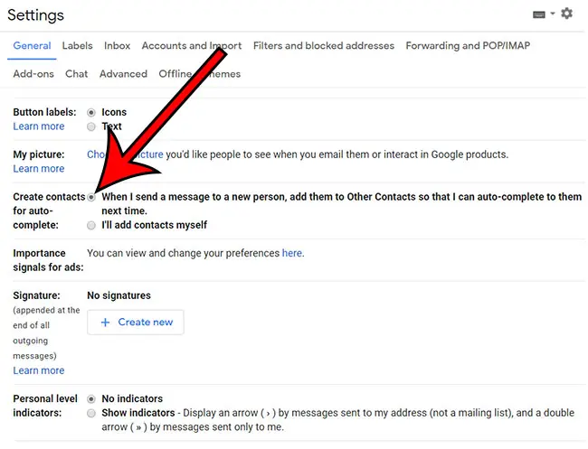 Vaihe 3: Vieritä alasLuo kontakteja automaattisen täydentämiseksiosa ja napsauta ympyrää vasemmalla puolellaKun lähetän viestin uudelle henkilölle, lisää ne muihin yhteystietoihin, jotta voin tehdä heille automaattisesti seuraavan kerran.