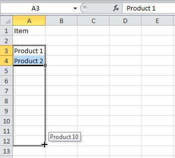Kun luot ensimmäisen kerran tietojoukon Microsoft Excel 2010:ssä, tietoja syötetään todennäköisesti paljon. Vaikka tämä on luonteeltaan työlästä toimintaa, sitä voidaan tehdä vieläkin enemmän, jos kirjoitat vain hieman erilaisia arvoja jokaiselle riville. Esimerkiksi "Tuote 1, tuote 2, tuote 3" jne.