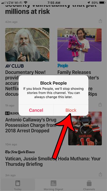 Opas jatkuu alla lisätietoja siitä, kuinka kanava estäisi Apple News -sivustolla iPhonessa, mukaan lukien kuvat näistä vaiheista.