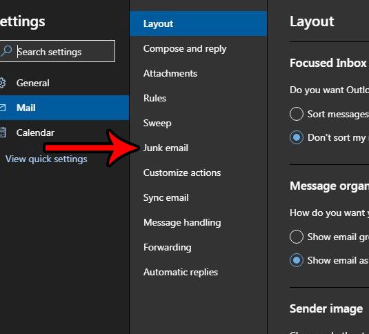 Vaihe 4: ValitseJunk -sähköpostivaihtoehto keskisarakkeessa.