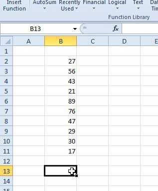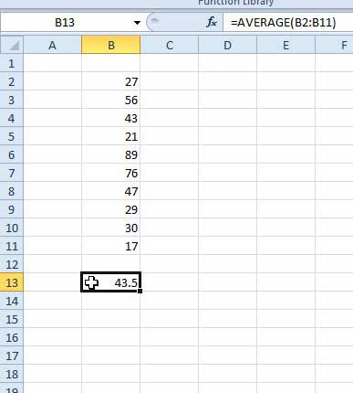 Aiomme löytää 10 numeron sarakkeen keskiarvon ja aiomme kirjoittaa kaavan manuaalisesti.