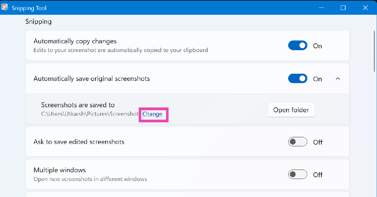 Vaihda Snipping Toolin tallennuspaikka Windows 11 -tietokoneellasi tai kannettavalla tietokoneella