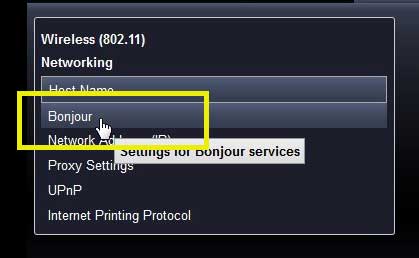 Tärkein osa opetusohjelmaa, jos aiot tehdä tämän toisella HP -tulostimella, on saada tulostimen IP -osoite ja etsi sitten Bonjour -valikko verkkoselainliittymästä.