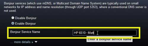 - Kirjoita haluttu nimiBonjour -palvelun nimiala.
