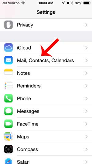 Vaihe 2: Vieritä alas ja valitsePosti, yhteystiedot, kalenteritvaihtoehto.