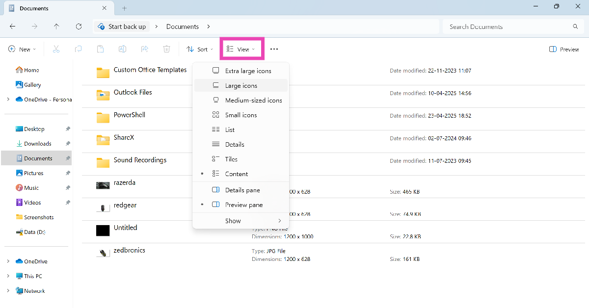 Windows 11 -tietokoneesi avulla voit asettaa nykyisen kansioasettelun oletusnäkymätyypiksi kaikille samankaltaisille kansioille. Valittavana on yhteensä 8 asettelua: