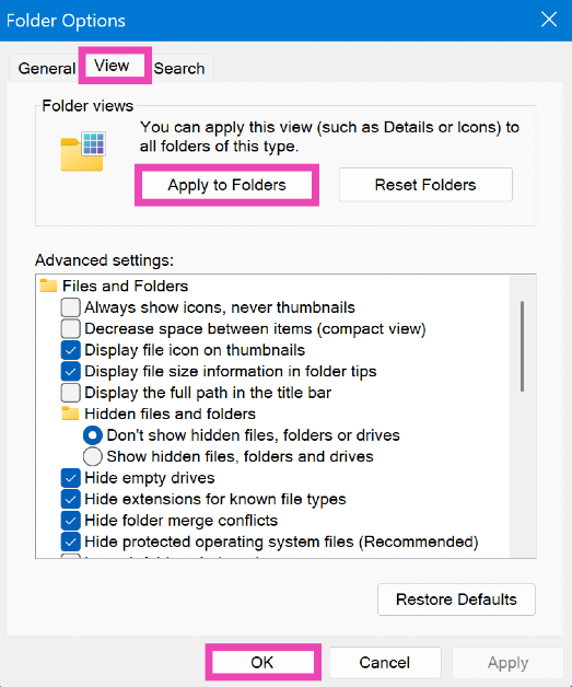 Vaihe 6:OsumaOK. Näkymätyyppiä sovelletaan kaikkiin samankaltaisiin kansioihin.