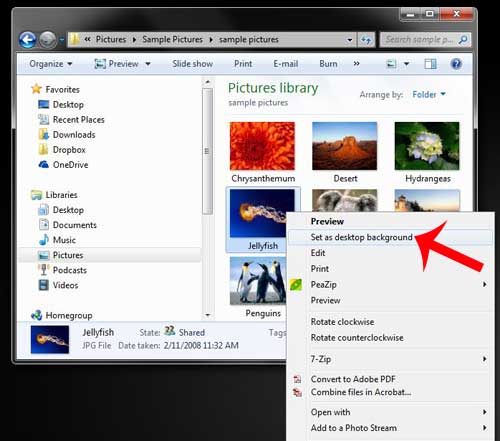 Vaihe 2: Napsauta kuvaa hiiren kakkospainikkeella ja napsauta sittenAseta työpöydän taustaksi.
